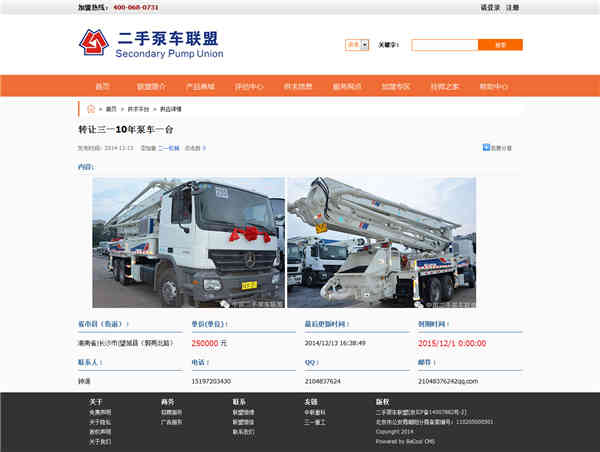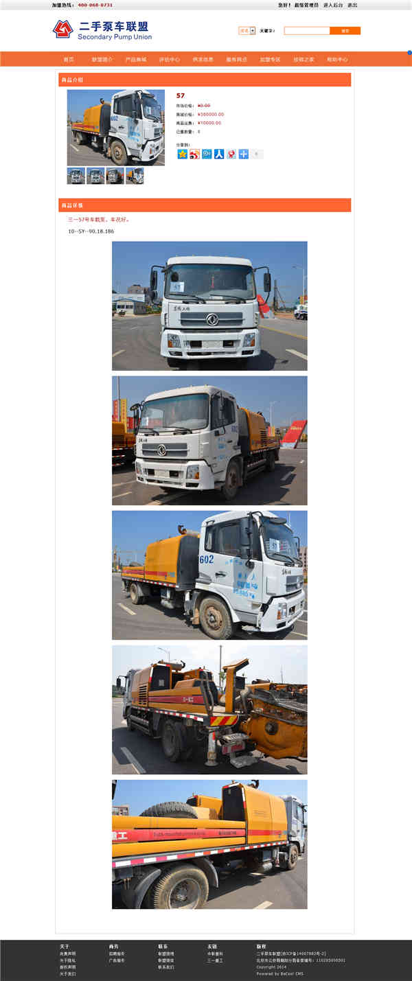 中國(guó)二手泵車聯(lián)盟網(wǎng)站“商品詳情”頁(yè)面效果