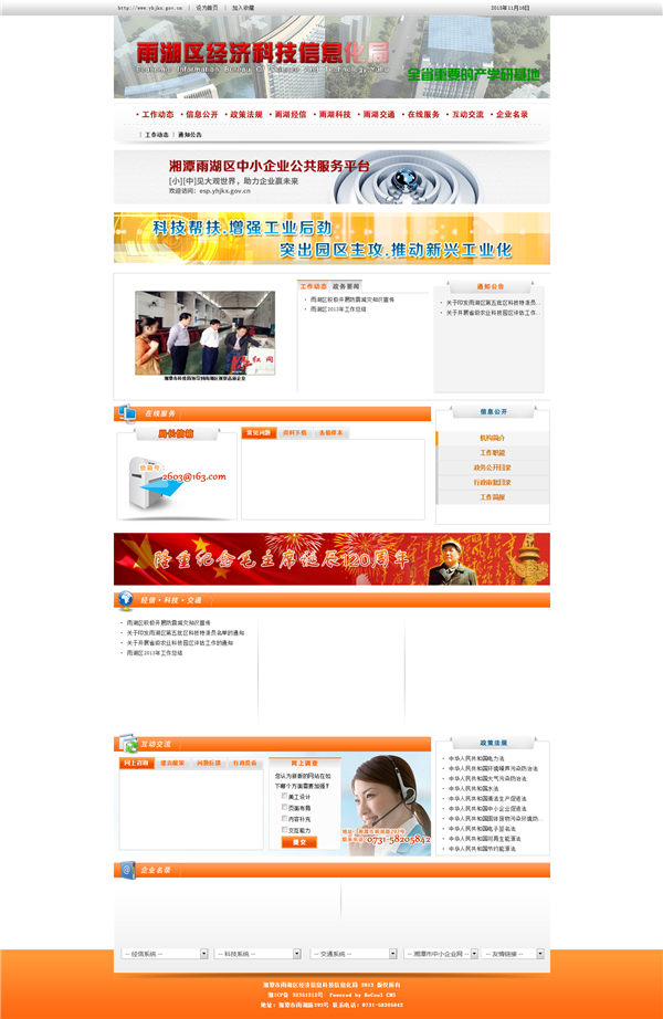 雨湖區(qū)經(jīng)濟(jì)科技信息化局網(wǎng)站首頁(yè)效果圖