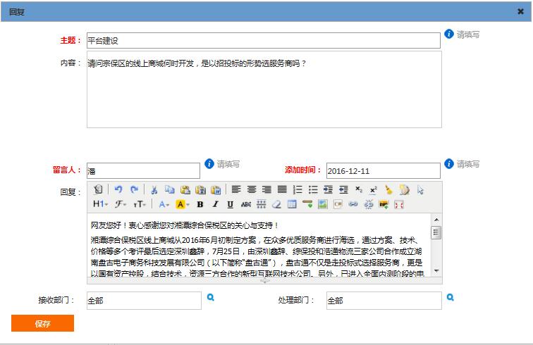 3. 管理員對把留言推送到對應(yīng)的處理部門