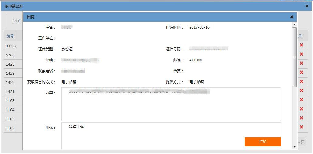 4. 管理員可打印相關(guān)的申請和回復(fù)信息