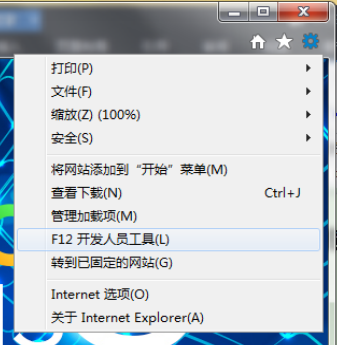 ”,選擇“F12開(kāi)發(fā)人員工具”,或者打開(kāi)IE后直接點(diǎn)擊鍵盤的“F12”。