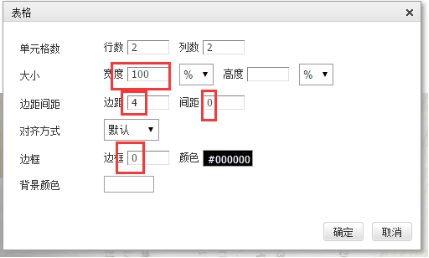 1) 選預計好文章中需要并排的圖片的多少,添加相應行數(shù)和列數(shù)的表格。在表格屬性中如下圖中設(shè)置數(shù)據(jù)。