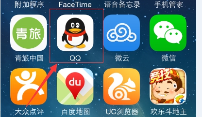 該方法需要進入相應程序里進行清除緩存。這種方法對應第一種方法來說顯得繁瑣些,因為需要進入每個程序里進行操作。下面我們以手機QQ軟件作為例子。第一步我們在蘋果手機桌面找到QQ軟件,然后點擊它。