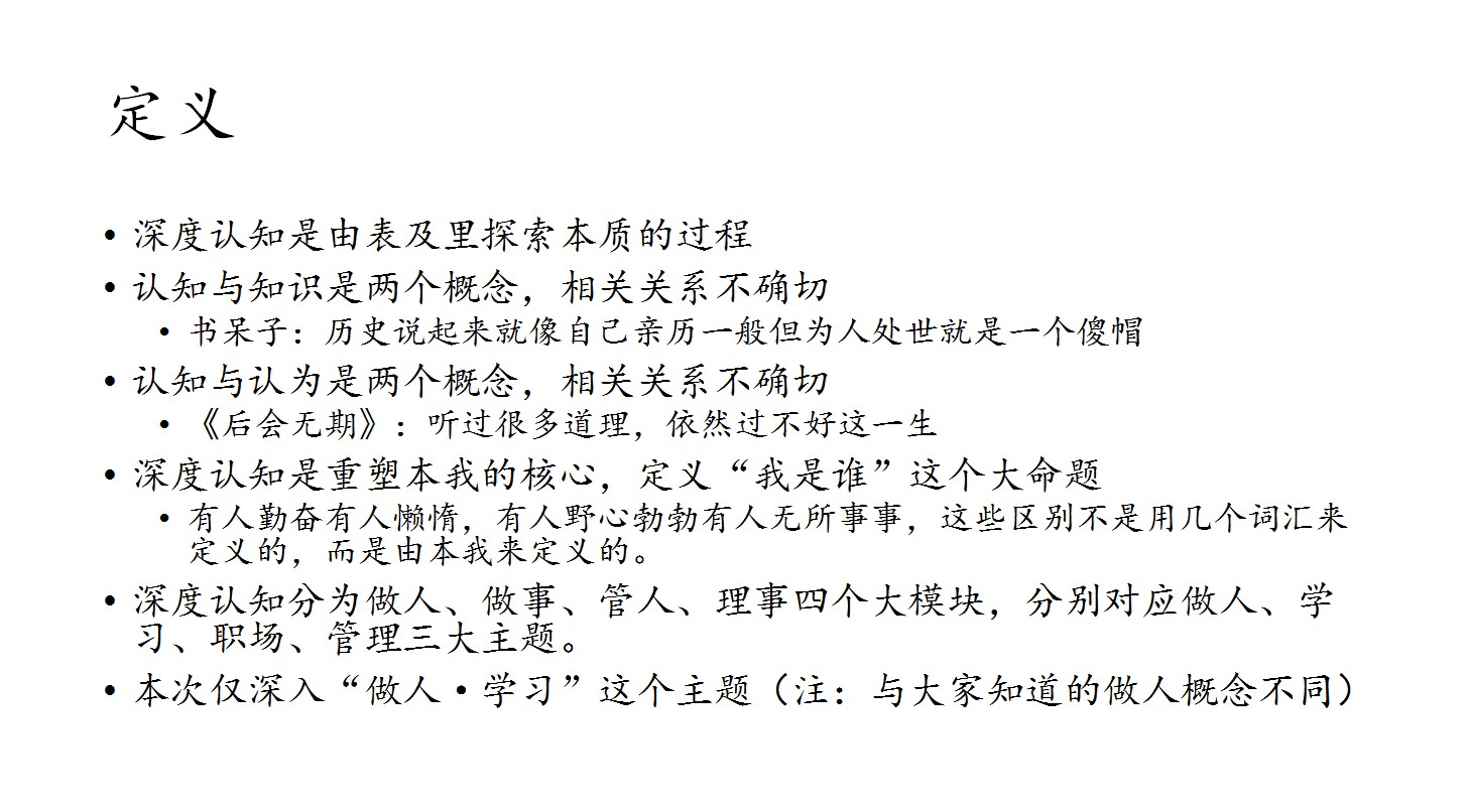 課程內(nèi)容從深度認(rèn)知的定義,逐漸展開。